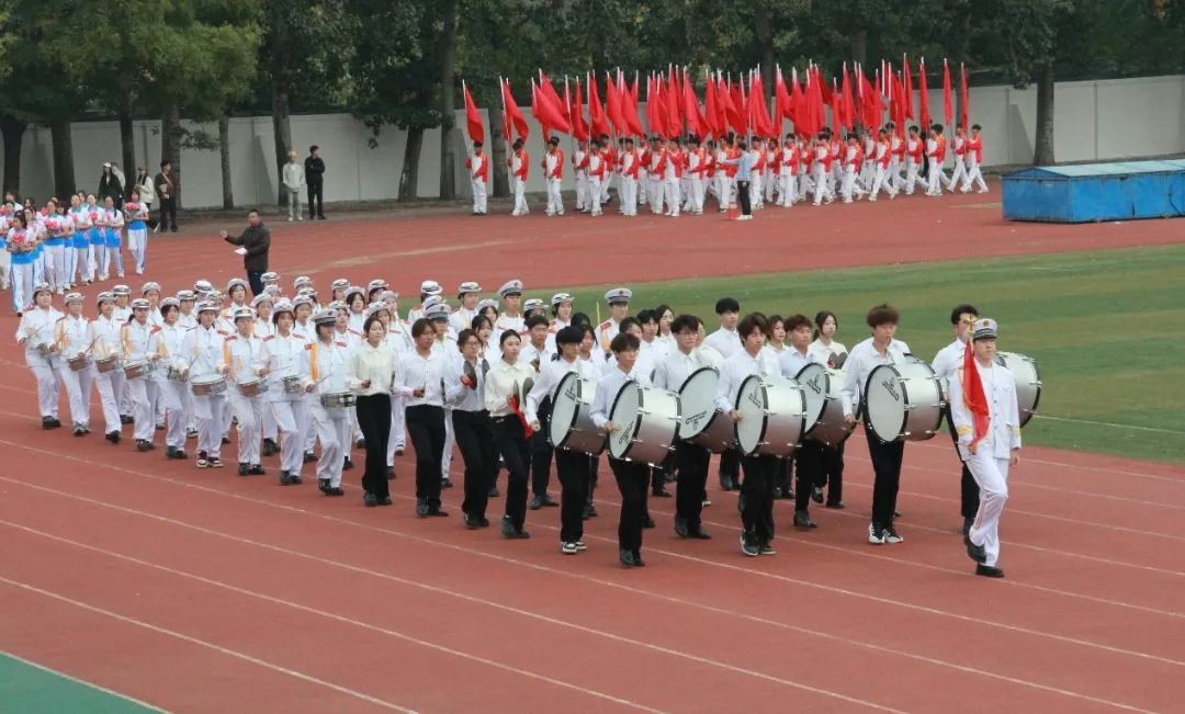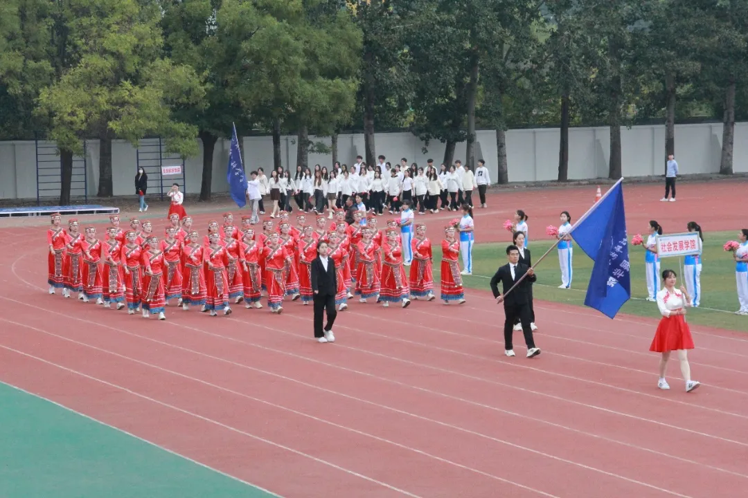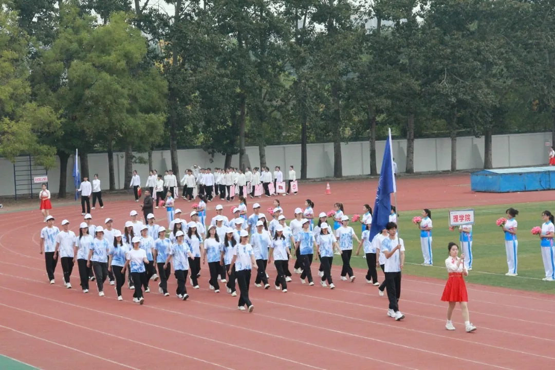 开幕式现场,雄壮激昂的旋律响彻云霄,裁判员、运动员率先入场,国旗方队、校旗方队、会旗方队、鼓乐方队逐一亮相,彰显出磅礴雄伟的气势。15个学院方队以整齐的队列、响亮的口号、铿锵的步伐走过主席台,他们精神饱满、神采飞扬,充分展现了对本次体育盛会的热切期盼与深厚热爱。