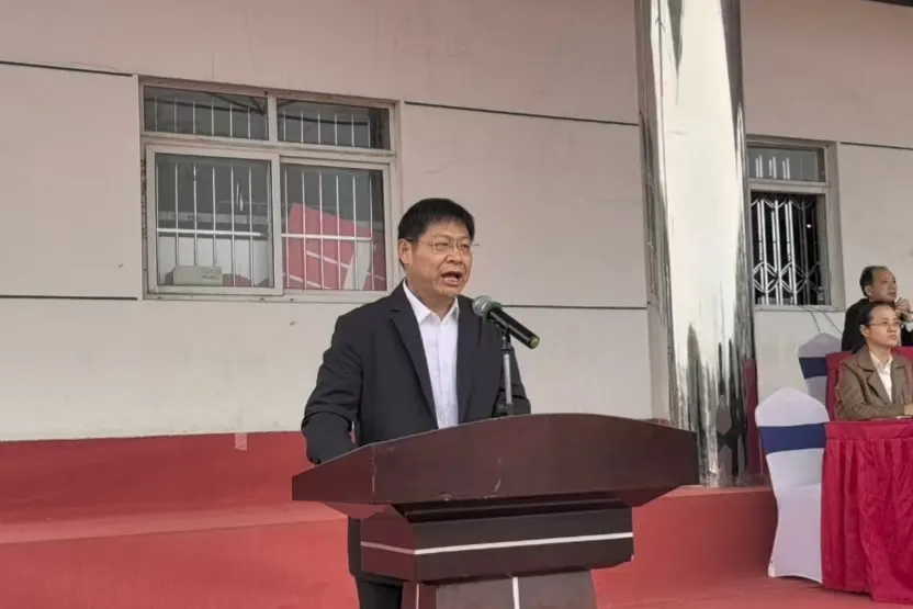 时培磊致闭幕词,首先向各位参赛运动员创造佳绩表示衷心祝贺,向为运动会付出辛勤劳动的运动员裁判员以及志愿者致以真挚的感谢。并指出大家在运动会上展现出非常优秀的精神风貌,希望各位学生和教职工可以把这种精神以及集体荣誉感转化为学习工作中的正确行动,以更加饱满的热情和坚定的信心共同迎接即将到来的本科教育教学审核评估,用实际行动为廊坊师范学院增光添彩,用实际行动为教育强国建设献出力量。