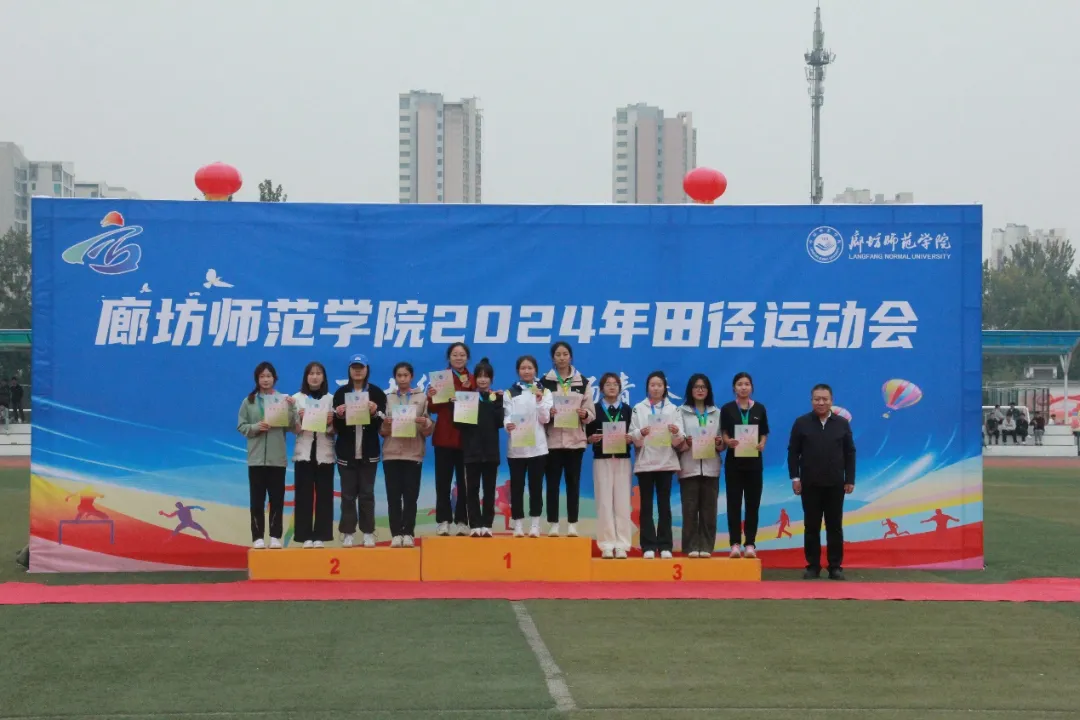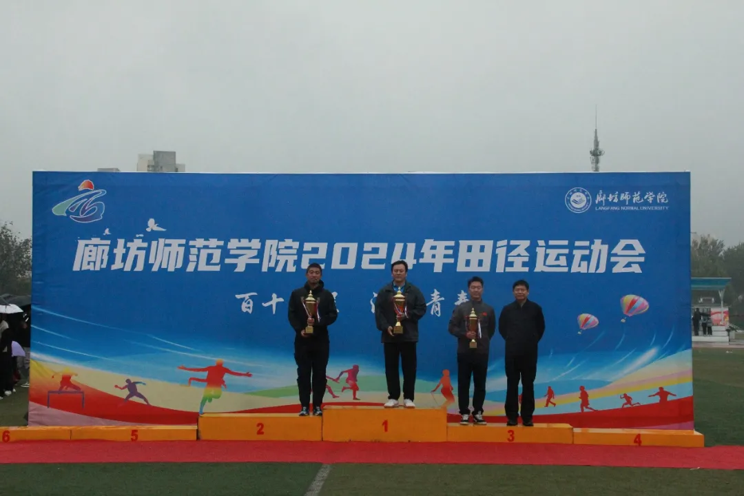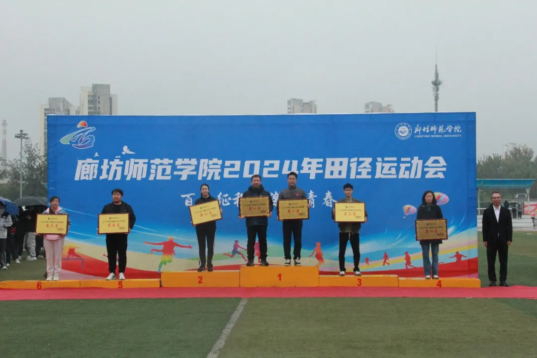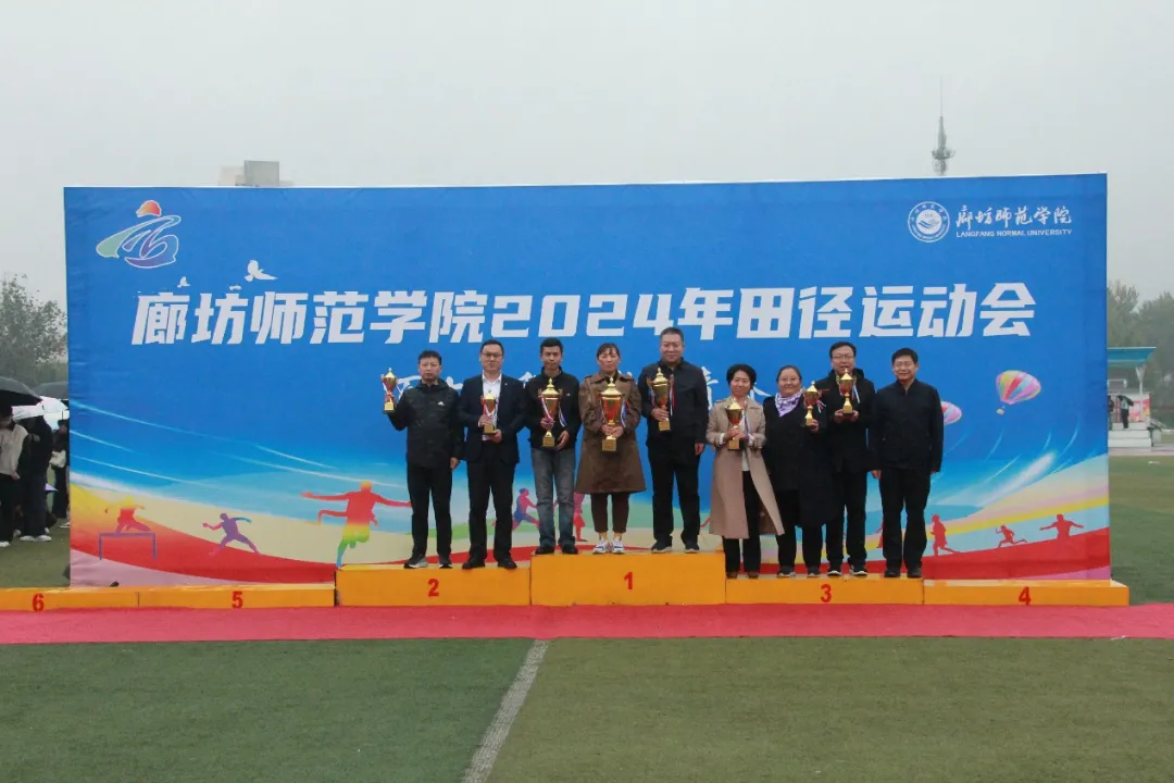 荣耀时刻,见证辉煌。本次运动会不仅设立了多个竞技项目,还特设了团体奖、精神文明奖以及师生趣味运动会奖,旨在增强各学院的凝聚力与向心力,展现各学院高水平的文明素养与精神风貌。总裁判长以庄重的声音宣读廊坊师范学院2024年田径运动会精彩成绩,随后,领导老师们分别揭晓了2024年田径运动会团体奖、精神文明奖与教职工趣味运动会的获奖者。