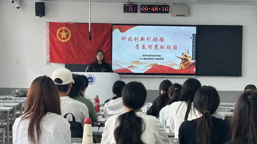 团支书向同学们详细介绍活动背景、目的与流程,着重强调科技创新在新时代对国家发展及民族复兴的关键推动作用,激励大家以青春之力勇立时代潮流,争当时代先锋。随后播放聚焦科技创新历程与青年奋斗故事的影片。影片通过老一辈科学家艰苦攻关的感人场景,以及与当代青年在前沿领域探索突破的精彩画面,生动呈现科技创新的时代传承与青年担当,让同学们深切感悟到创新的魅力与肩负的使命。