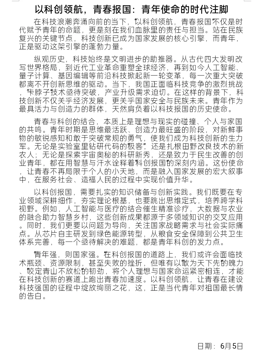 此次团日活动,既是对科技创新精神的宣导,更是对青年团员科技创新意识的激发。未来,化材学院学子将以科技创新为指引,让青春智慧融入时代发展,在创新征程中勇毅前行,绽放新时代青年的绚丽光彩!